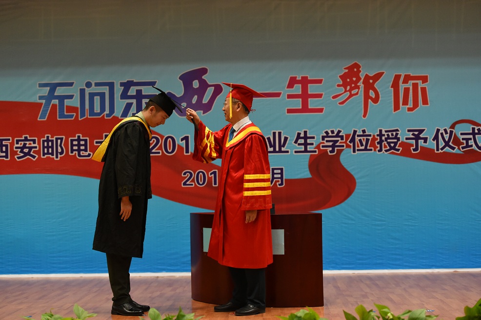 6月26日下午,我校2018届本科生学位授予仪式在国际会议中心隆重举行。校学位评定委员会主任、校长范九伦教授为bet365官网登录近600名毕业生逐一拨穗正冠,授予学位。学校党政办主任韩炳黎、党委宣传部部长荆昊、学工部部长齐劲进、教务处处长楼旭明、 bet365官网登录院长杜慧敏、党委书记马斌奇和毕业班辅导员参加仪式。